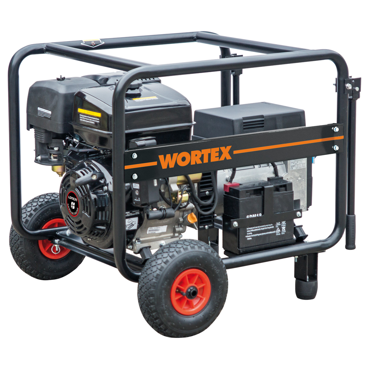 Gruppo elettrogeno trifase/monofase con motore a scoppio 4 tempi a benzina, flangiato ad un alternatore NSM a 2 poli trifase/ monofase. Sistema di regolazione della tenzione AVR. Avviamento con autoavvolgente ed elettrico a batteria. Quadro di comando con 2 prese (una trifase CEE 16A e una monofase CEE 16A) protettore termico e voltometro.