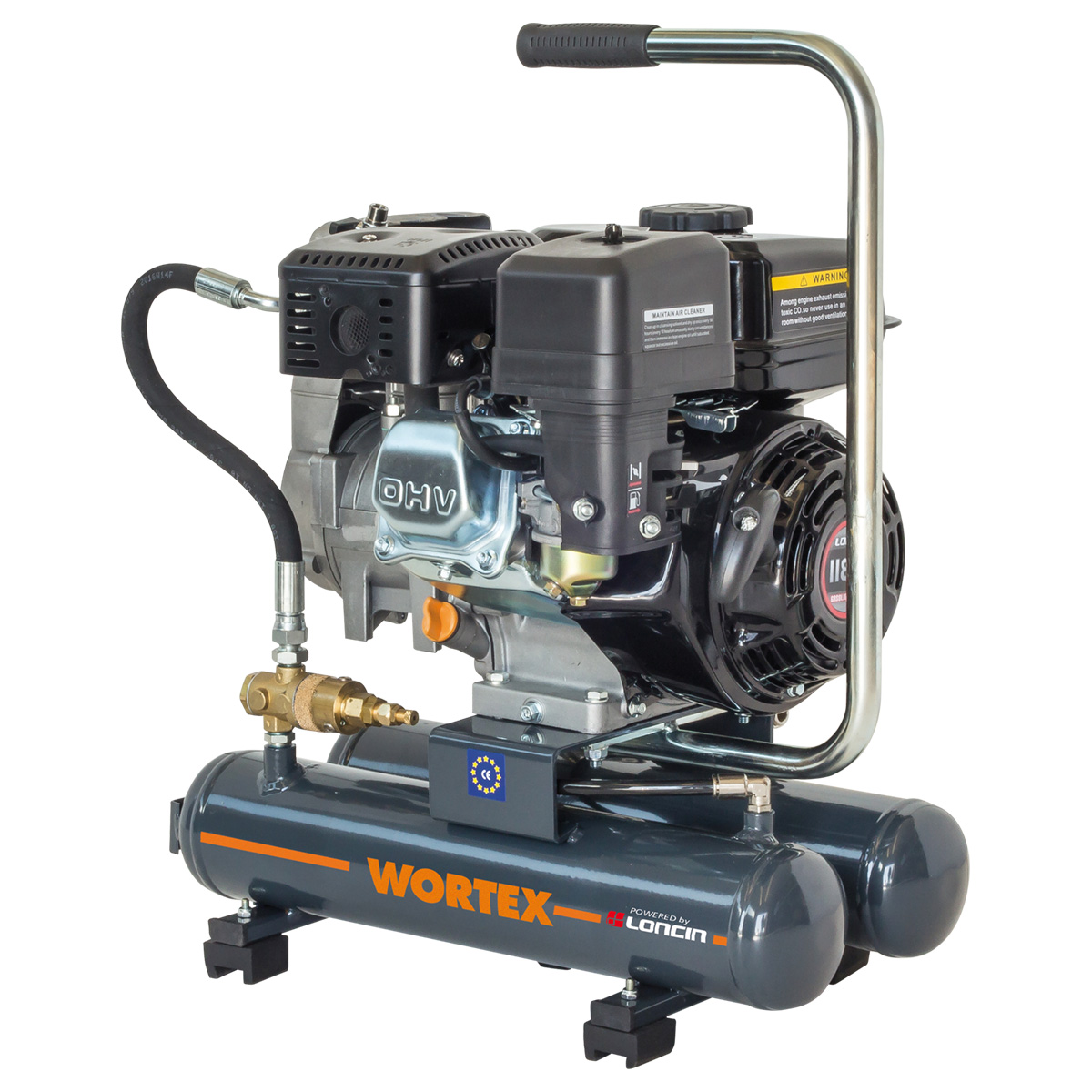 Motocompressore bi-bombola, con motore LONCIN da 4 Hp, estremamente compatto e leggero per un facile trasporto. Dotato di piedini antivibranti, valvola automatica di messa a vuoto, lubrificatore, manometro in glicerina e rubinetto rapido.