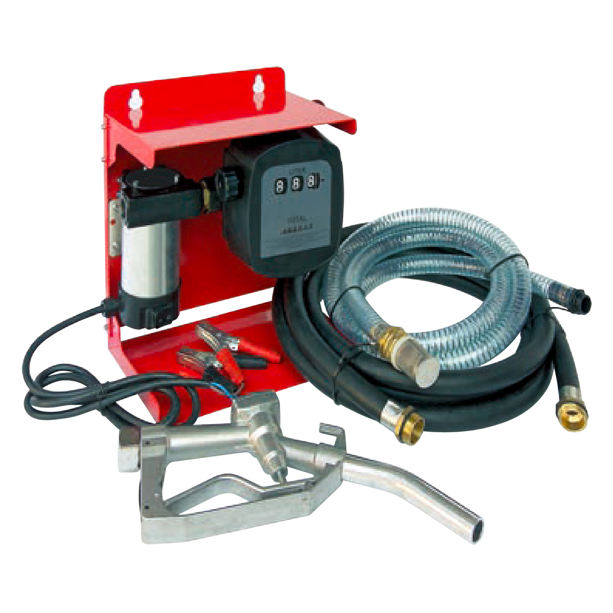 Completo di una elettropompa con motore a corrente continua, telaio in acciaio verniciato, contalitri, cavi d’alimentazione