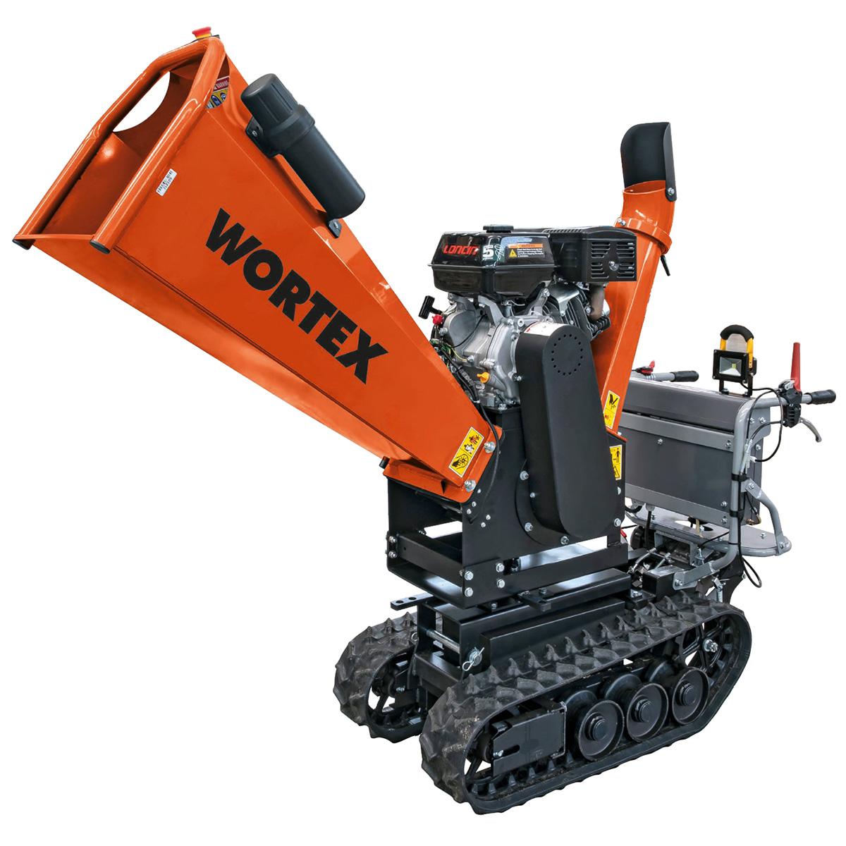 Il TIGER-BEACH D420/120L facilmente movimentabile, abbina la motocarriola Elettrica cingolata Beach 270-E e il Biotrituratore