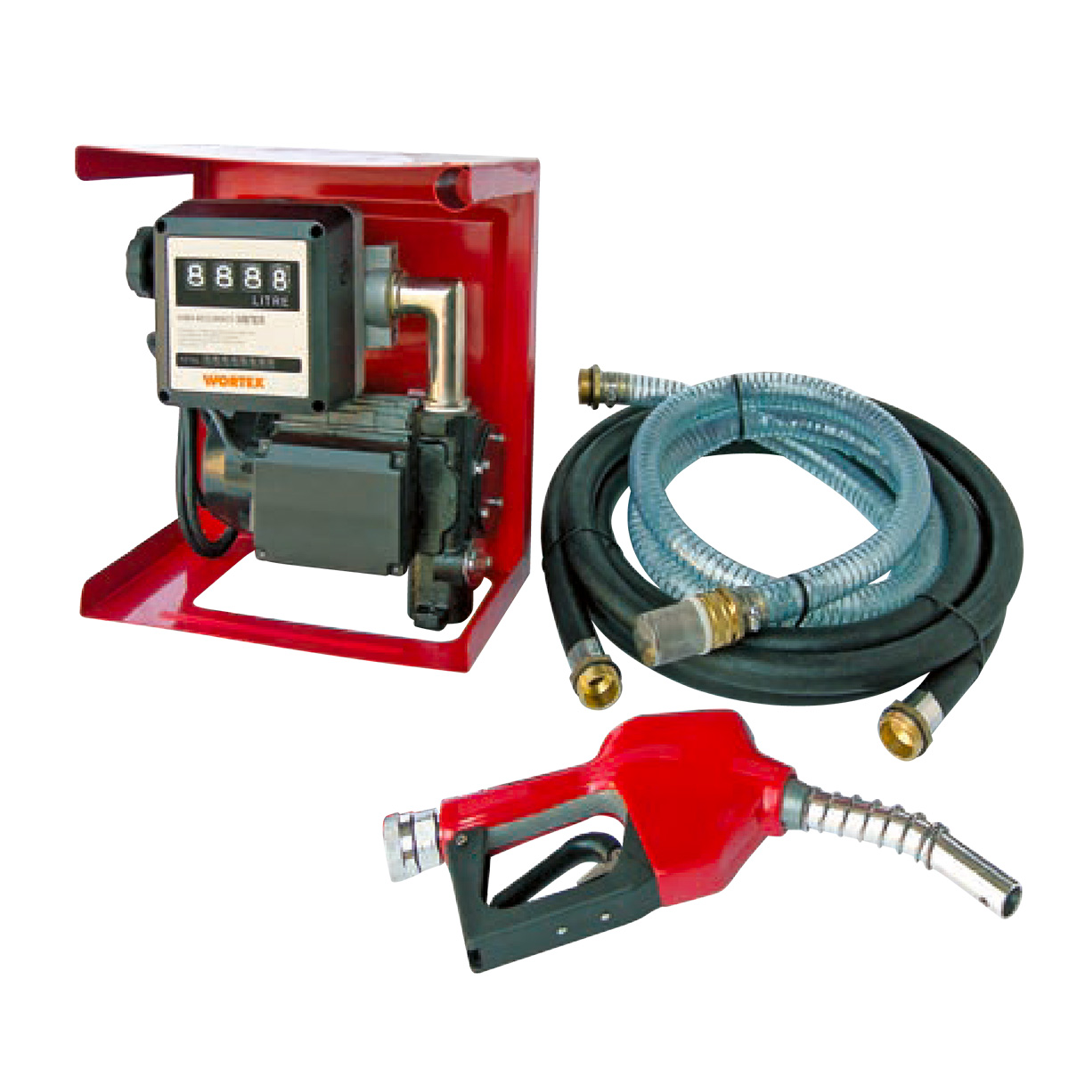 Completa di una elettropompa con motore 230V-50Hz, telaio in acciaio verniciato, contalitri, tubo antistatico